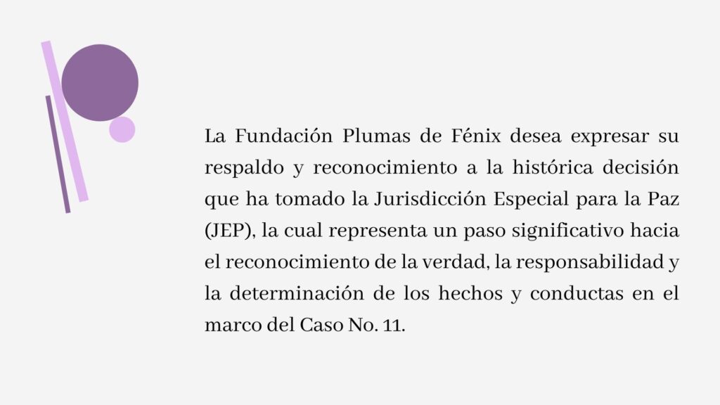 Comunicado de la Fundación Plumas de Fénix sobre la Apertura de la Etapa deReconocimiento de Verdad y Responsabilidad en el Caso No. 11 de “violencia basadaen género, violencia sexual, violencia reproductiva, y otros crímenes cometidos porprejuicio basados en la orientación sexual, la expresión y/o identidad de génerodiversa en el marco del conflicto armado colombiano”.